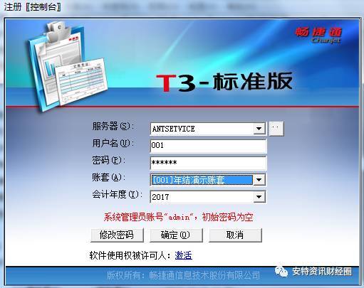所以我們在重新登錄【系統(tǒng)管理】時,登錄用戶用 賬套主管 身份登錄,登錄會計年度選擇2017年;