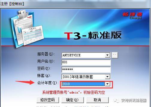 登錄T3,以新的年度2018年1月1日進入軟件,總賬系統(tǒng)的對賬是在期初余額部分。