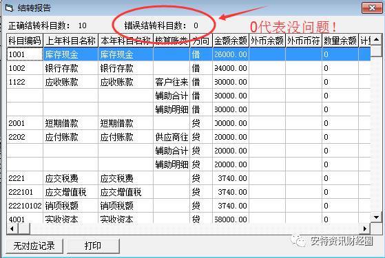 試算平衡、借貸數(shù)據(jù)與上年期末余額數(shù)相等,對賬無錯即為正常結轉(zhuǎn)。