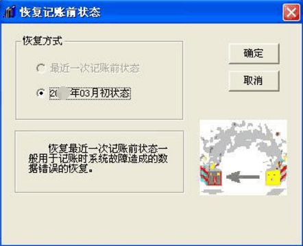 4、在彈出的“恢復(fù)記賬前狀態(tài)”窗口,根據(jù)需要選擇“最近一次記賬前狀態(tài)”或“××××年××月初狀態(tài)”。