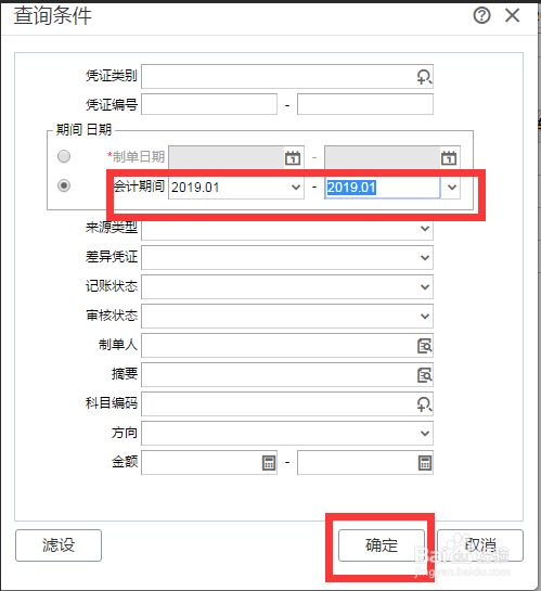 在軟件首頁左側(cè)菜單欄,選擇“總賬”,點擊“憑證管理”,進(jìn)入“憑證管理”的“查詢條件”界面,選擇“會計期間”等查詢條件,點擊“確定”按鈕進(jìn)行查詢。