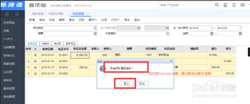 同時按鍵盤上的“Ctrl+Alt+H”組合鍵,彈出”取消記賬,是否繼續(xù)”的提示信息,點擊“是”。