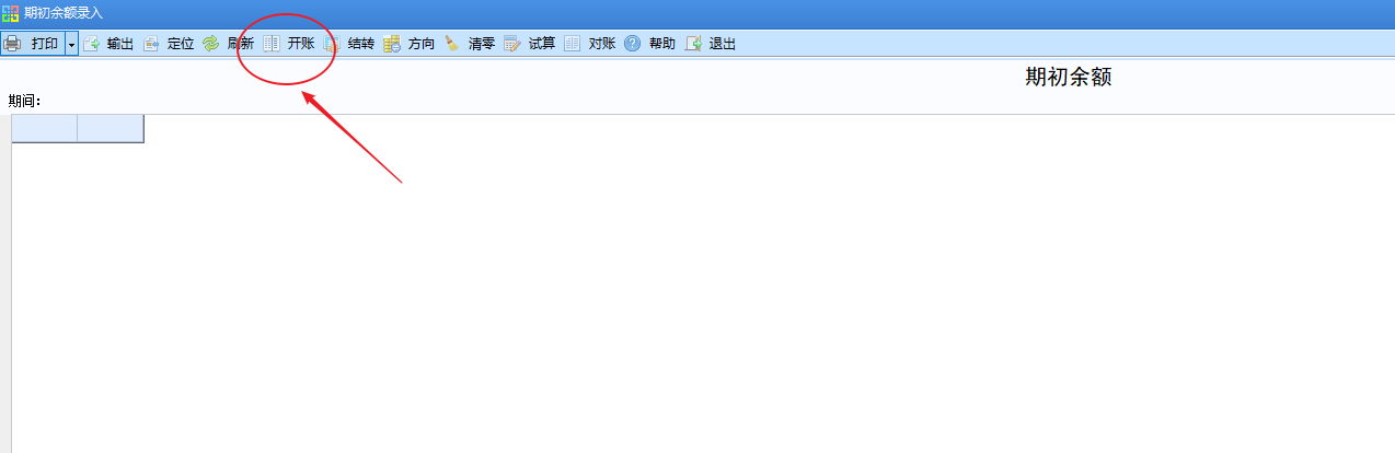 2)用新年度1月登陸軟件,到期初余額界面點擊開賬按鈕。