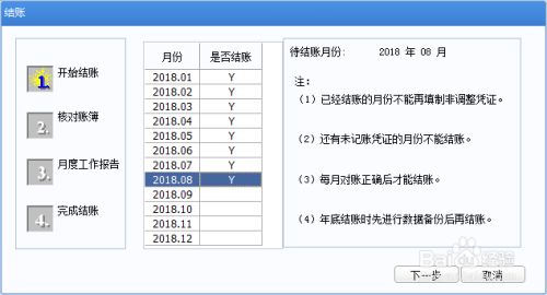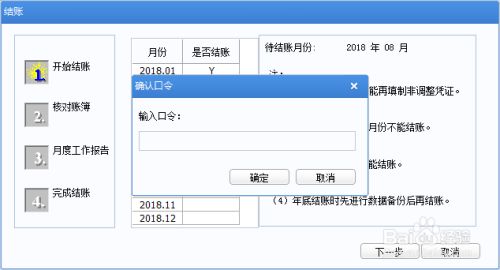 輸入密碼口令后,2018年8月份對(duì)應(yīng)的“Y”消失,反結(jié)賬成功!點(diǎn)擊“取消”按鈕,退出結(jié)賬窗口。
