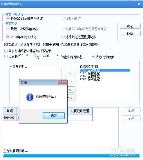 彈出“恢復記賬完畢”!點擊“確定”!這樣可以對2018年8月份憑證取消審核后,進行修改!